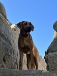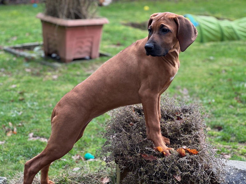 Avila ist ziemlich viel Ridgeback - innen wie außen. Die Rassebeschreibung, die den Hund als wachsam, nicht scheu und mutig umschreibt, trifft bei ihr voll zu. Zudem ist sie mit 68cm eine stattliche Erscheinung.
