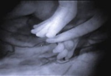 Die Zitzen schwellen weiter an. Die Bewegung der Welpen im Mutterleib ist leicht erkennbar, wenn man die flache Hand vorsichtig auf den Bauch der Hündin legt. Sie muss dazu völlig entspannt sein. Die Früchte erreichen rund 75 % ihres Geburtsgewichts. Die Größe der Frucht beträgt ca. 12 cm.