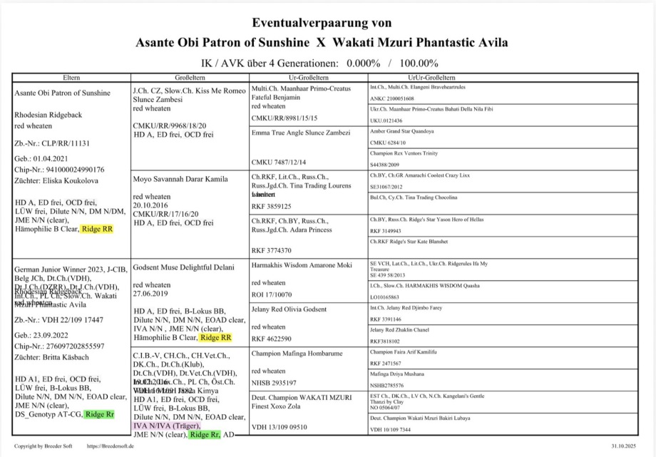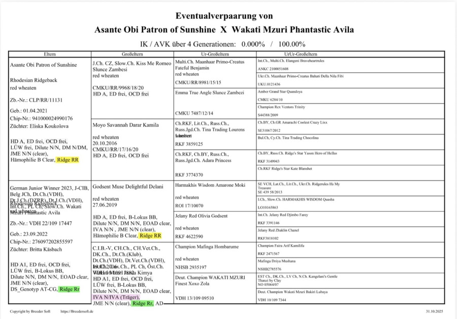 In Kombination mit Avila hoffen wir auf eine sehr ansprechende Anatomie und auf ein waches, aber stimmiges Wesen. Wir sind gespannt, was Mutter Natur diesmal zaubern wird!