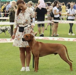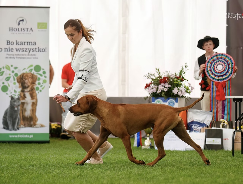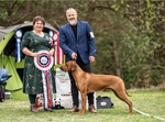 Angel ist ein sportlich eleganter Rüde, der nicht massig oder plump wirkt. Er hat ein flottes Gangwerk und einen freundlichen, aufgeschlossenen und angenehmen Charakter.