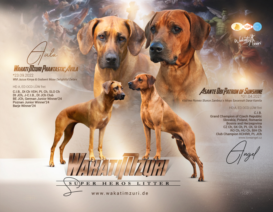 Seine Besitzer haben ihn vor Avila bislang 2x als Deckrüde zum Einsatz kommen lassen. Beide sind sehr darauf bedacht, selektiv und mit Augenmerk vorzugehen, und haben sich lange Zeit gelassen. Angel ist nunmehr 4 Jahre alt und wurde in dieser Zeit oft ausgestellt. Er hat einige großartige Erfolge zu verbuchen.
